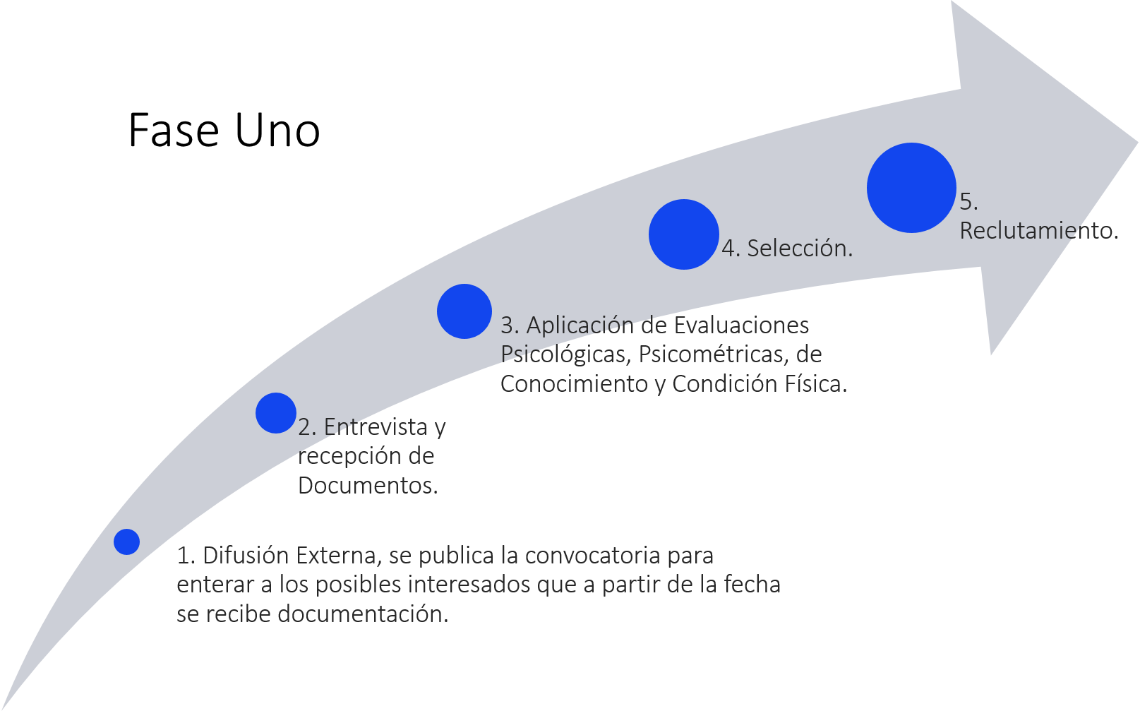 1. Tiene como inicio el reclutamiento a través de la publicación de una convocatoria llamada Difusión Interna (ésta aplica solo para que a ese curso de formación tengan acceso integrantes de una corporación o institución de policía que aún no cuentan con el reconocimiento por parte del secretariado ejecutivo del sistema nacional de seguridad pública, pero ya desempeñan labores de policía).